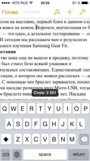 Как видим, он очень простой, совершенно не перегруженный, в отличие от интерфейса MS Word 2011 и даже OpenOffice. Вместе с тем, по сравнению с Pages пятилетней давности новый интерфейс куда более функциональный и удобный. Здесь появилось много приятных возможностей, некоторые из которых стали доступны совсем недавно: например, отображение количества слов или знаков (с пробелами и без) внизу страницы прямо в процессе работы (для журналистов — бесценно!). Причем то же самое доступно и в iOS-версии!