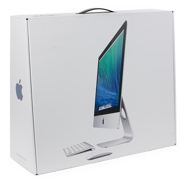 В плане комплектации и упаковки в новой модели iMac (Mid 2014) ничего не изменилось. Моноблок поставляется точно в такой же коробке, что и модель прошлого года.