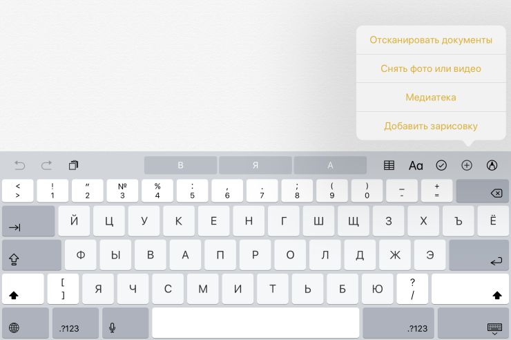 Во-первых, сама опция запрятана глубоко. Надо создать новую заметку, найти плюсик в нижнем правом углу, нажать на него и выбрать пункт «Отсканировать документы».
