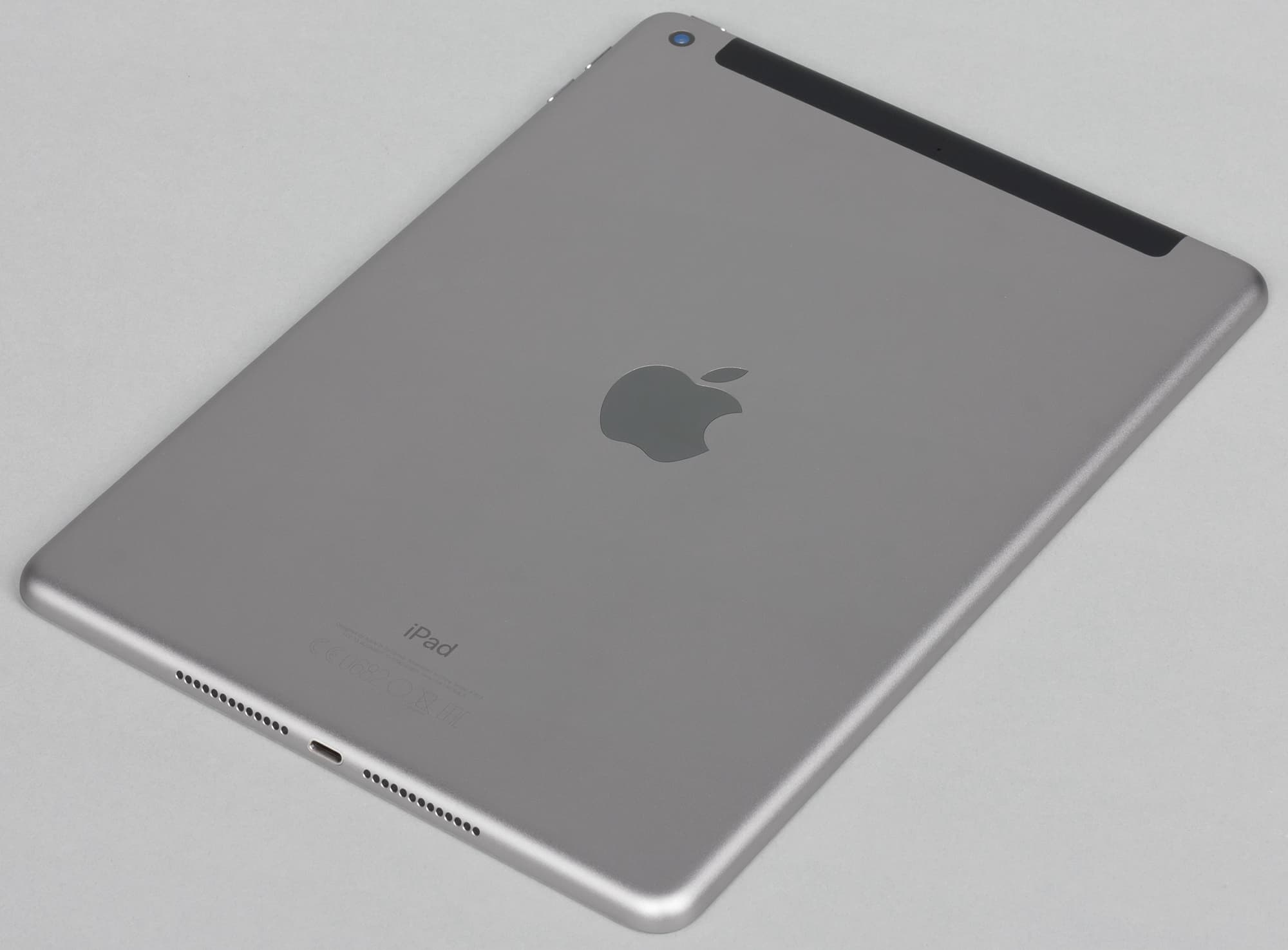 Во-первых, динамики расположены только внизу, справа и слева от разъема Lightning. Следовательно, стереозвука здесь нет. Во-вторых, у камеры отсутствует вспышка, а сама камера не выступает над уровнем задней поверхности. В-третьих, на левой грани нет коннектора для клавиатуры. Наконец, в-четвертых, верхняя панель в версии с LTE-модулем целиком выполнена из пластика, тогда как у iPad Pro она сделана в виде тонкой пластиковой полоски.