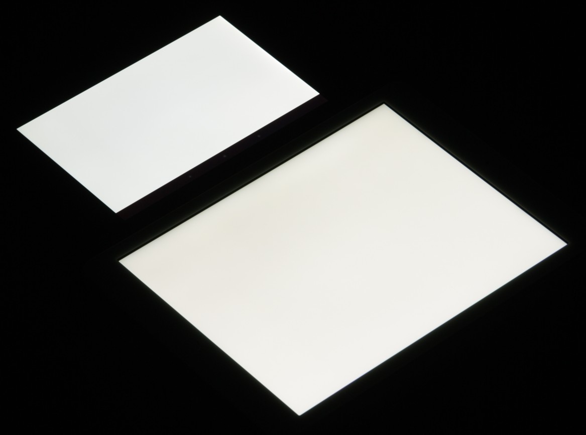 Для наглядности приведем фотографии, на которых в выключенных экранах обоих планшетов отражается белая поверхность: