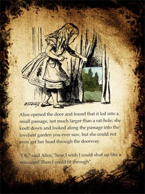 Главная особенность Alice for the iPad — это интерактивные «вкрапления». Например, если вы, читая про кролика с часами, качнете iPad, часы, висящие на букве S, тоже качнутся — так, как если бы они были настоящими. Или, например, вы можете увидеть в маленькой дверце, которую нашла Алиса, побежав за кроликом, кусочек другого мира; покрутите iPad из стороны в сторону или поводите пальцем по окошку, и вам окроются те детали этого мира, которые скрыты за занавесками...