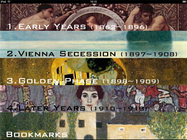 Если эта информация вам мешает (так как отображается она поверх картины), то ее можно убрать, просто дотронувшись до экрана. Еще из любопытных возможностей: вы можете сохранить любую картину в Bookmarks, хотя на самом деле это не закладки, а что-то вроде избранного — то есть подборка ваших любимых картин. Это неплохо, но закладки традиционного типа были бы полезнее. Ведь сложно просмотреть картины даже одного периода за один раз. А после закрытия приложения вернуться к той картине, на которой вы остановились, невозможно — приходится вручную долистывать до нужного места.