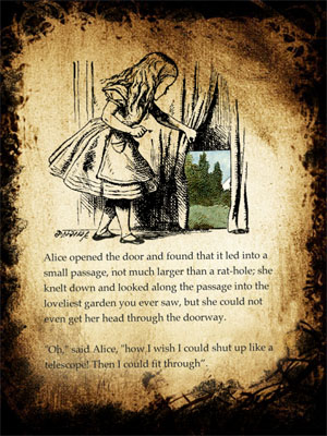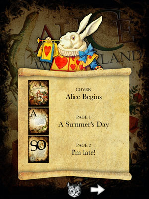 Понятно, что дизайн и организация книги (или книг, если их в приложении несколько) будет индивидуальной и определяемой исключительно разработчиками данного приложения. Это дает возможность создавать поистине удивительные вещи, которые даже и книгами-то не назовешь — настолько необычно они сделаны. Один из ярких примеров такого приложения — Alice for the iPad, электронная версия книги Льюиса Кэрролла «Алиса в стране чудес».