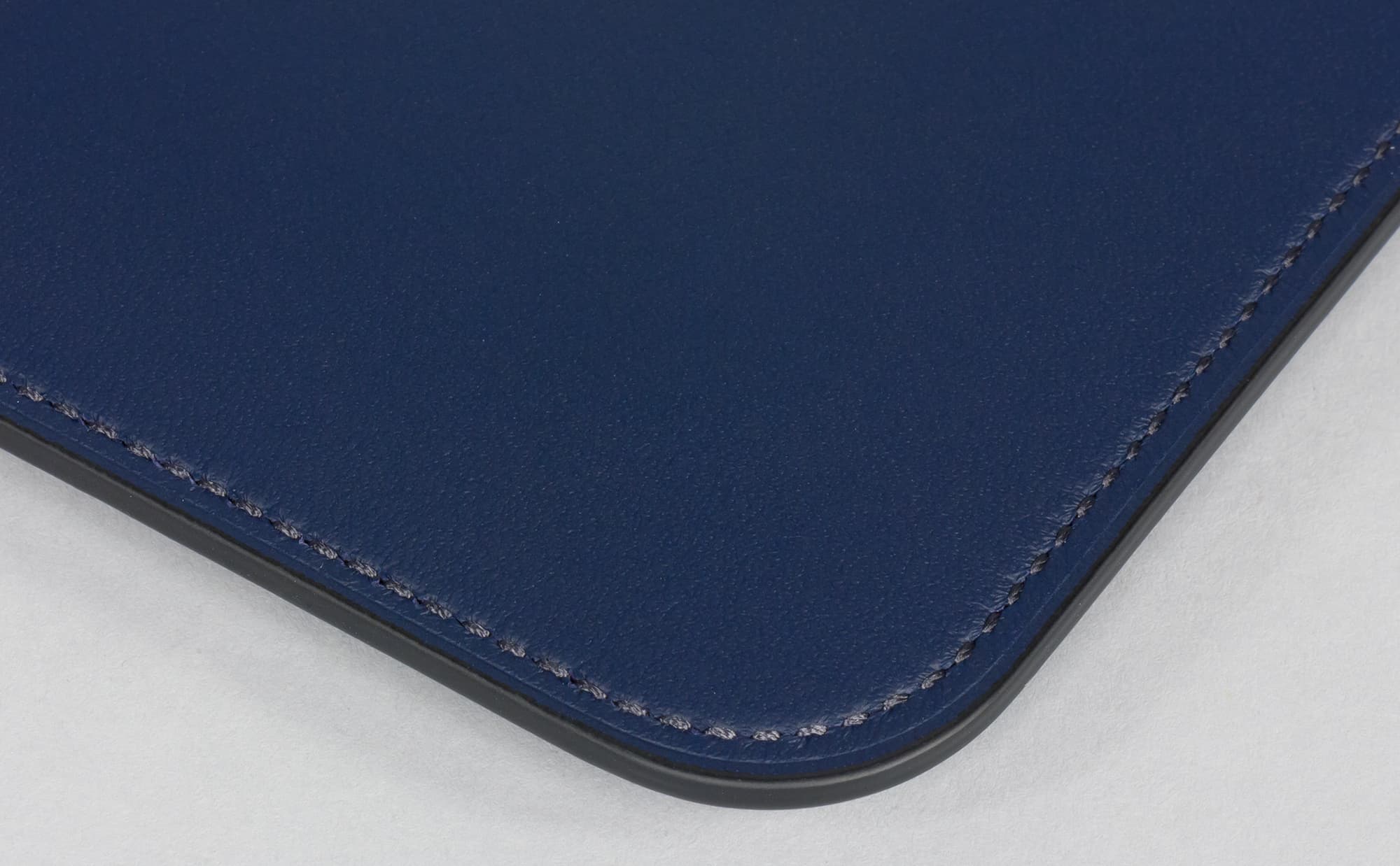 Чехол-футляр выполнен из натуральной кожи. С тыльной стороны фактура гладкая, с фронтальной — чуть более шершавая, с более выраженным рисунком кожи. Внутри чехла — мягкое покрытие. Чехол доступен в трех цветовых вариантах: темно-синем, коричневом и черном.