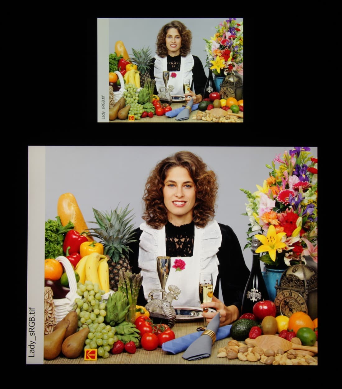 Отметим хорошую равномерность яркости и цветового тона белого поля. И тестовая картинка: