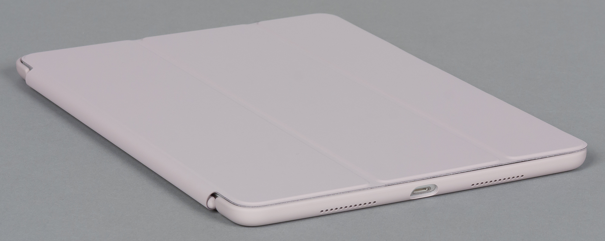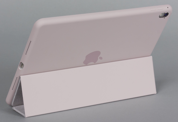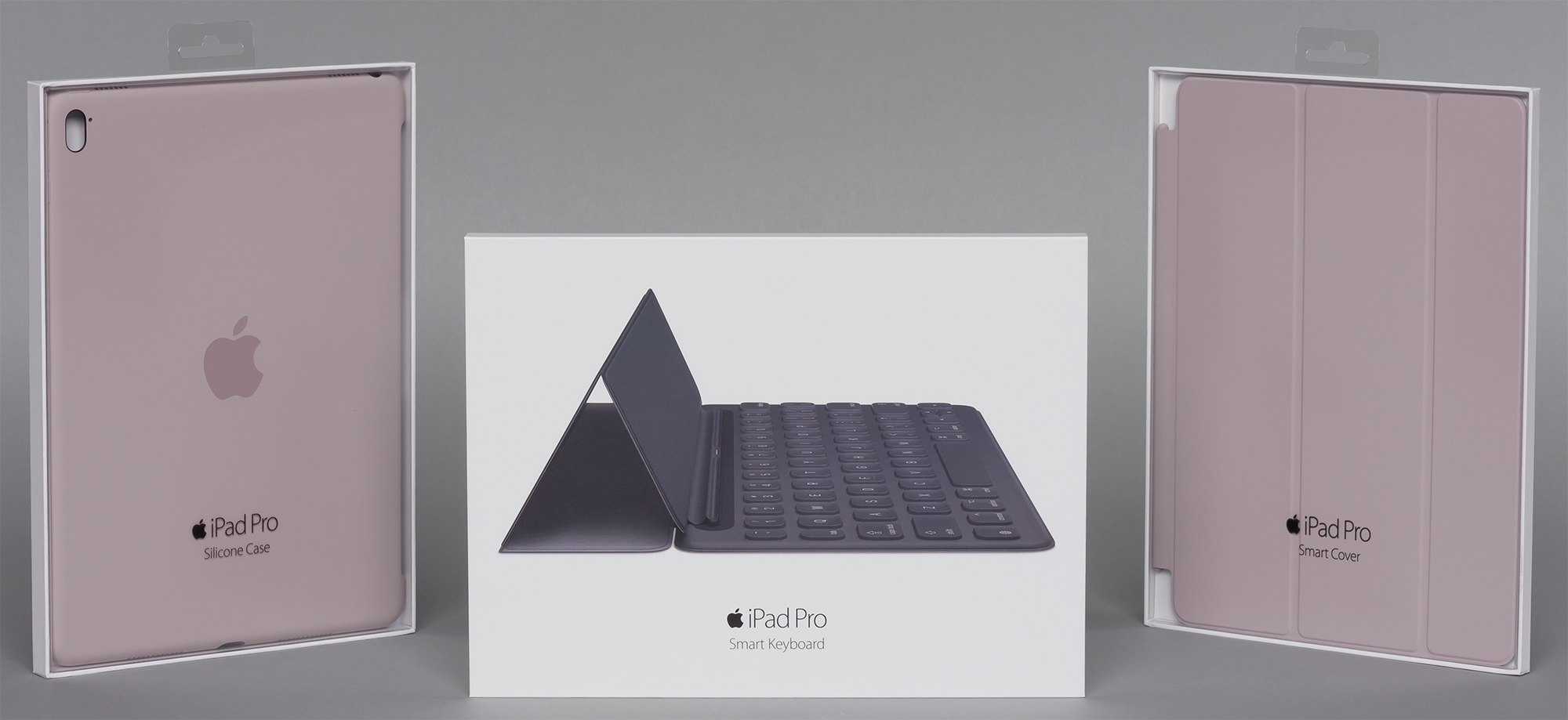 Когда мы надели аналогичные чехол и обложку на iPad Pro, то получившаяся конструкция показалась нам слишком громоздкой. В случае же с iPad Pro 9,7″ увеличение габаритов из-за надетых аксессуаров не так бросается в глаза и раздражает. Даже наоборот: получается аккуратно и красиво. Поэтому мы смело рекомендуем обзавестись, как минимум, Smart Case, а можно еще и Silicone Case. К тому же, сами эти вещицы очень приятные на ощупь. Приятнее, чем Smart Keyboard.