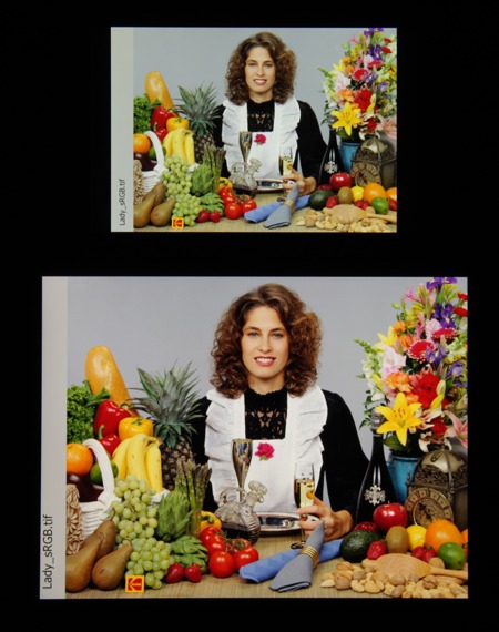 Такие спектры (к сожалению) встречаются в топовых мобильных устройствах от Sony и других производителей. По всей видимости, в этом экране используются светодиоды с синим излучателем и зеленым и красным люминофором (обычно — синий излучатель и желтый люминофор), что в сочетании со специальными светофильтрами матрицы и позволяет получить широкий цветовой охват. Да, и в красном люминофоре, видимо, используются так называемые квантовые точки. Само по себе это не есть плюс. Для потребительского устройства широкий цветовой охват является ни как не достоинством, а существенным недостатком, так как в итоге цвета изображений (рисунков, фотографий и фильмов), ориентированных на пространство sRGB (а таких подавляющее большинство), имеют неестественную насыщенность. Особенно это заметно на узнаваемых оттенках, например на оттенках кожи. Но в отличие от многих именитых и не очень компаний в Apple знают, каким должен быть цветовой охват, а потому аккуратно корректируют его до границ sRGB. В итоге визуально цвета имеют естественную насыщенность.