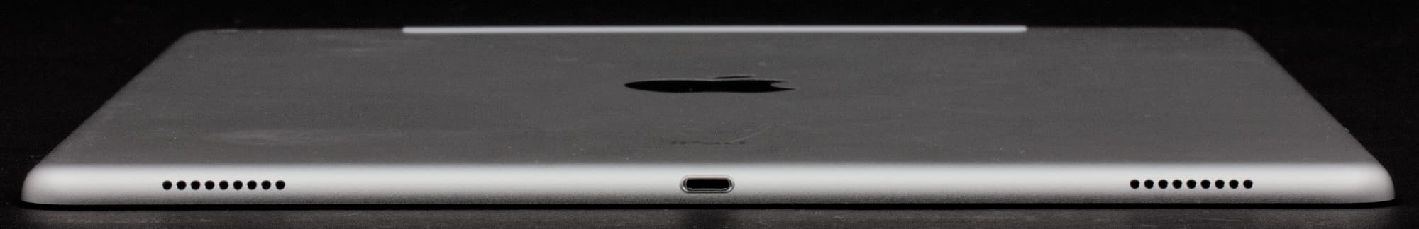 Форма корпуса и, в частности, граней не изменились по сравнению с iPad Air 2. На своих местах остались и все элементы управления и разъемы: традиционно, это Lightning на нижней грани, гнездо 3,5 мм на верхней грани, а также кнопка питания сверху и две продолговатые кнопки регулировки громкости справа.