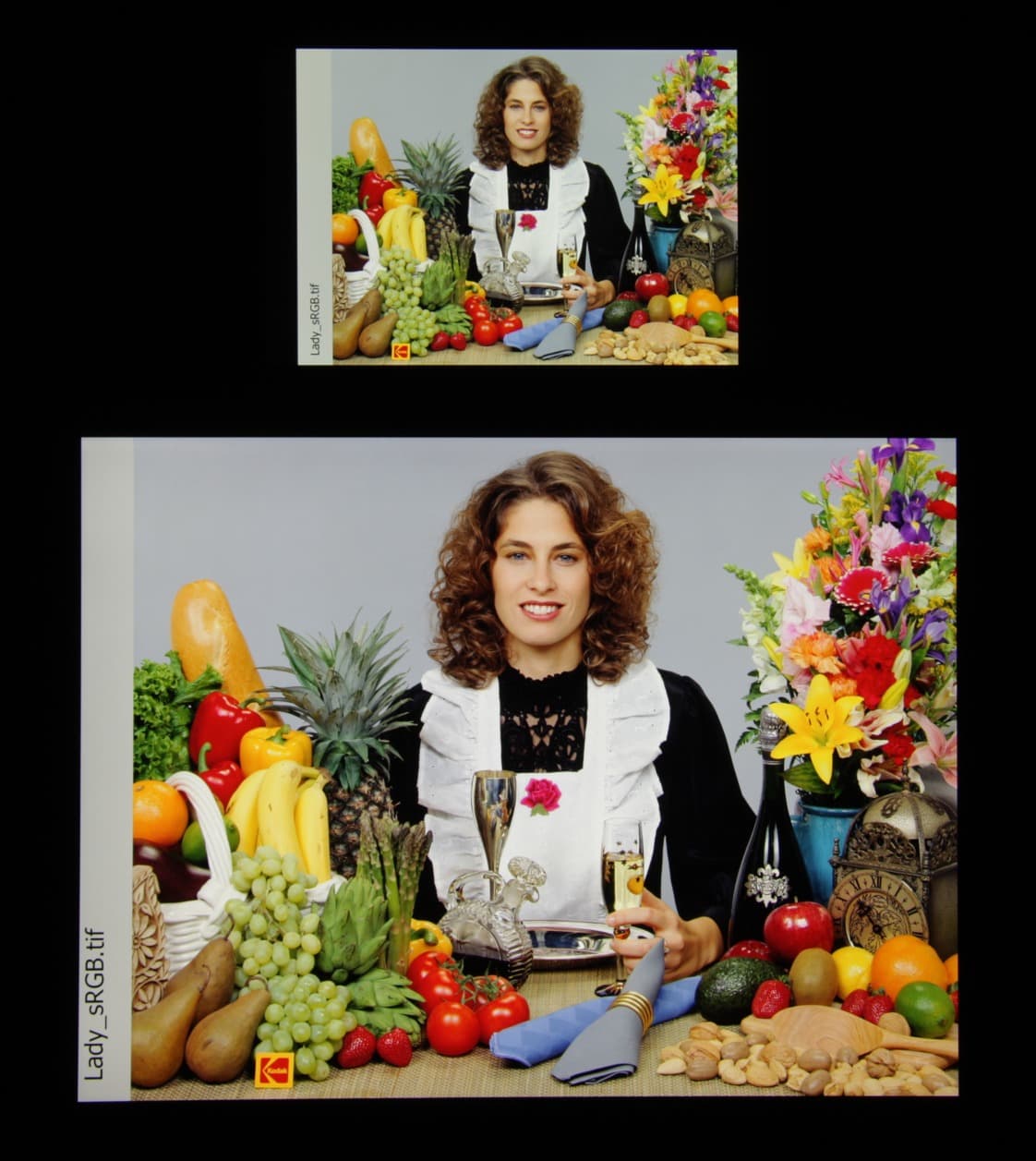 Отметим хорошую равномерность яркости и цветового тона белого поля. И тестовая картинка: