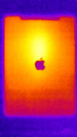 Локализация нагрева возросла, как и максимальная температура — до 39 градусов. Впрочем, даже это значение остается весьма комфортным для использования устройства. Тем более, его размеры таковы, что если вы будете держать планшет обеими руками, обхватывая с двух сторон (так обычно и держат планшет во время игр), то до максимально нагретой зоны вы просто не достанете.