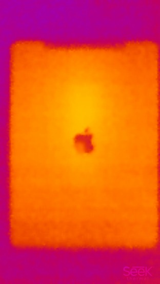 Ниже приведен теплоснимок задней поверхности, полученный после 10 минут работы теста аккумулятора в программе GFXBenchmark: