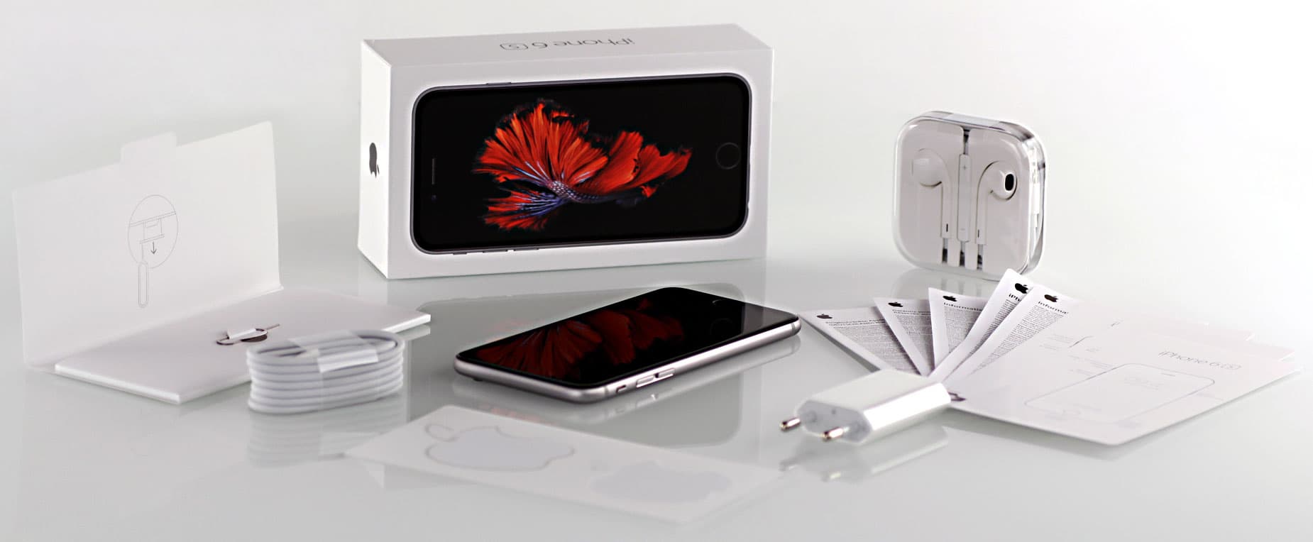 Упаковка iPhone 6s традиционна для смартфонов Apple и практически не отличается от упаковки смартфона предыдущего поколения. Разве что обращает на себя внимание яркая картинка на экране изображенного смартфона.