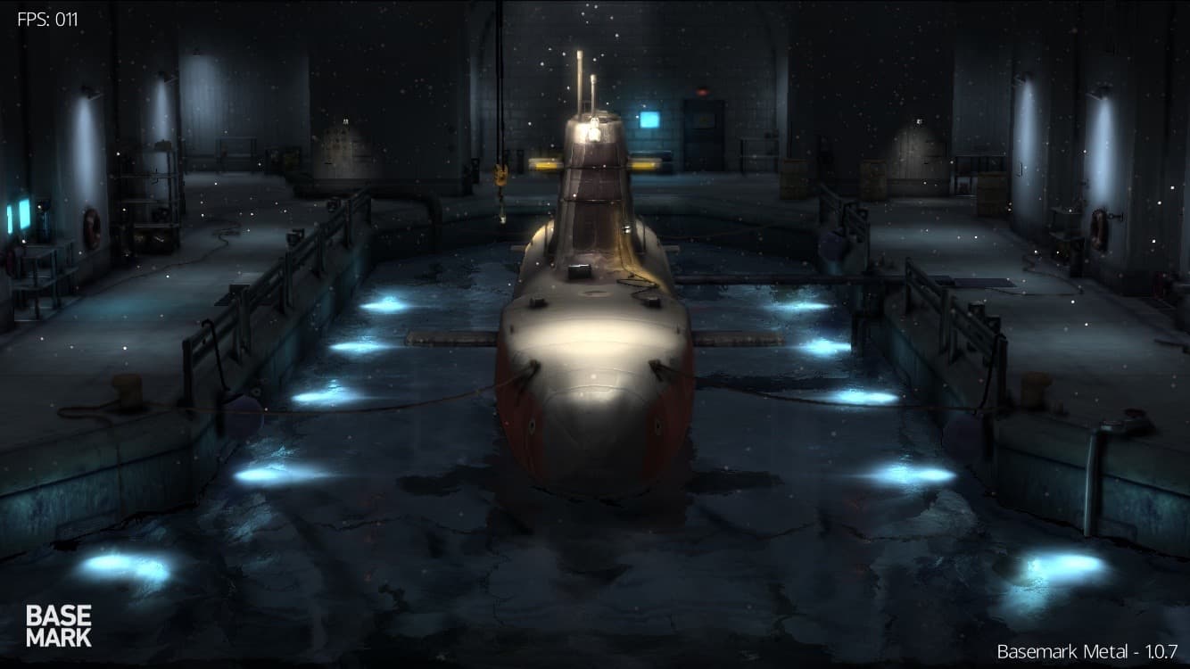 И здесь результаты получились еще более выигрышными для iPhone 6s. Во время отображения тестовой сцены в левом верхнем углу был счетчик кадров в секунду. В случае с iPhone 6 он показывал 11-12 fps, в случае с iPhone 6s — 30-35 fps. Учитывая, что даже у iPad Air 2 — самого мощного на данный момент планшета Apple (до выхода iPad Pro) — было 9-10 fps, можно сказать, что iPhone 6s — наиболее производительное в трехмерной графике устройство Apple. Ниже представлены скриншоты сцены из Basemark Metal с iPhone 6 (вверху) и iPhone 6s (внизу).
