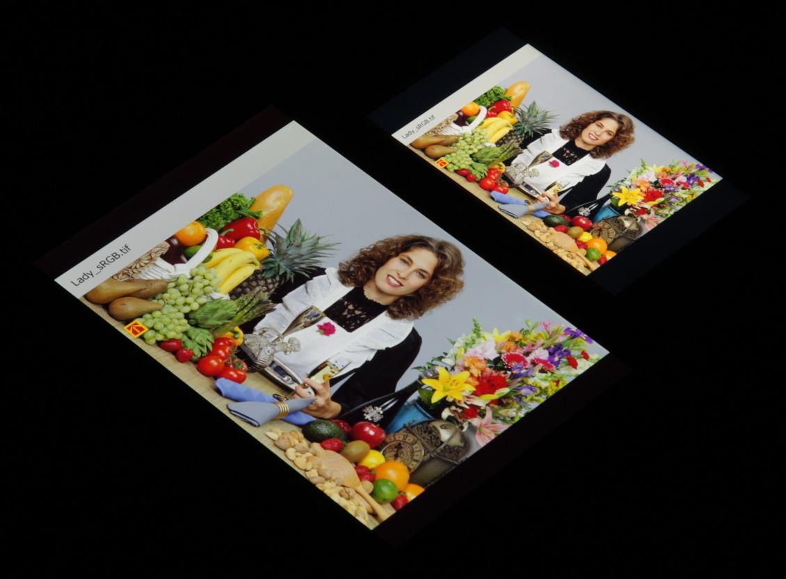 Это относится к тем изображениям, в которых прописан профиль sRGB или не прописано вообще никакого профиля. Однако родным для современных топовых устройств Apple является цветовое пространство Display P3 с немного более насыщенными зеленым и красным цветами. Пространство Display P3 основано на SMPTE DCI-P3, но имеет точку белого D65 и гамма-кривую с показателем примерно 2,2. Кроме того, производитель заявляет, что начиная с iOS 9.3 на системном уровне поддерживается управление цветом, это облегчает приложениям под iOS задачу правильно выводить на экран изображения с прописанным цветовым профилем. Действительно, дополнив тестовые изображения (файлы JPG и PNG) профилем Display P3, мы получили цветовой охват шире sRGB (вывод в Safari):