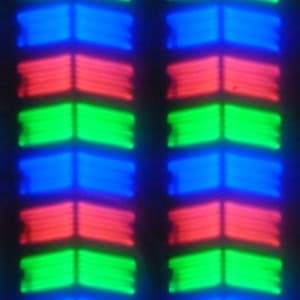 В данном смартфоне используется матрица типа IPS. Микрофотографии демонстрируют типичную для IPS структуру субпикселей:
