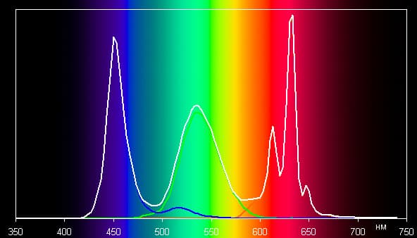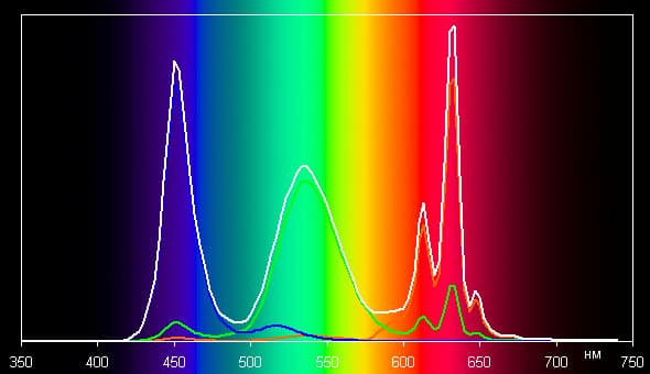 Отметим, что координаты первичных цветов практически в точности совпали с теми, что прописаны для стандарта DCI-P3. Смотрим на спектры в случае тестовых изображений с профилем Display P3: