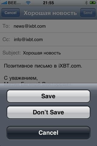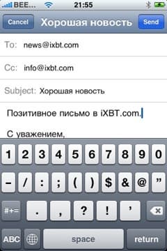 Вы можете отправить кроме простого текста, ссылку — в Safari при открытии нужной страницы нажмите плюс и далее «Mail Link to this Page». В этом случае в поле Subject будет название страницы (как прописано в теге title), а в теле письма будет ссылка. Также вы можете отправить фотографию по e-mail: выберите фотографию в фотоальбоме, нажмите нижний левый значок и выберите «Email photo».