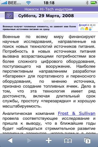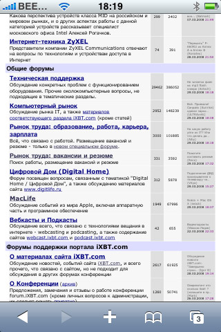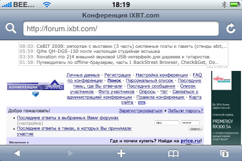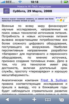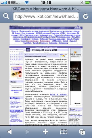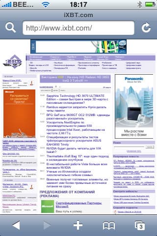 Следующее, что хотелось бы отметить — наличие RSS-ридера, как в «большом» Safari. Здесь все просто, стильно и удобно, его применение максимально актуально при отсутствии доступной точки Wi-Fi, ведь загрузка RSS-канала требует минимум трафика и для того, чтобы посмотреть, есть ли на вашем любимом сайте интересные новости, вовсе необязательно грузить целиком его главную страницу. Не забывайте, что на iXBT есть множество RSS-каналов, с полным списком которых вы можете ознакомиться здесь.