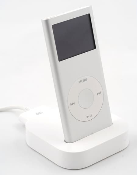 Как и прежде, в комплект поставки не входит док-станция (только адаптер) желающие могут приобрести ее отдельно. Стоит особенно обратить внимание, что, несмотря на большую схожесть плееров первого и второго поколения, док-станции у них разные (это вызвано различиями корпусов — бока у нового плеера скруглены), так что новый iPod nano не подойдет к доку для предыдущей модели и наоборот. Сзади кроме порта для подключения USB-кабеля находится аудиовыход, что порадует любителей стереосистем.