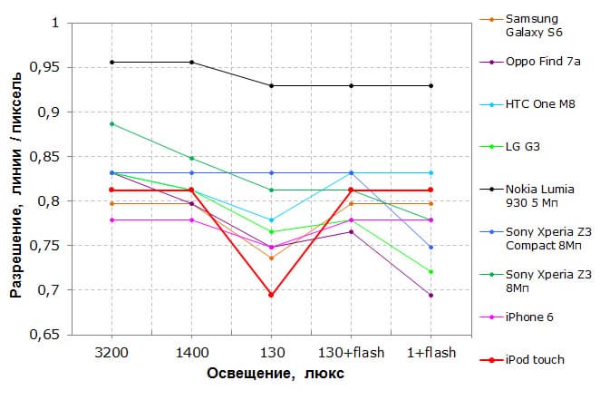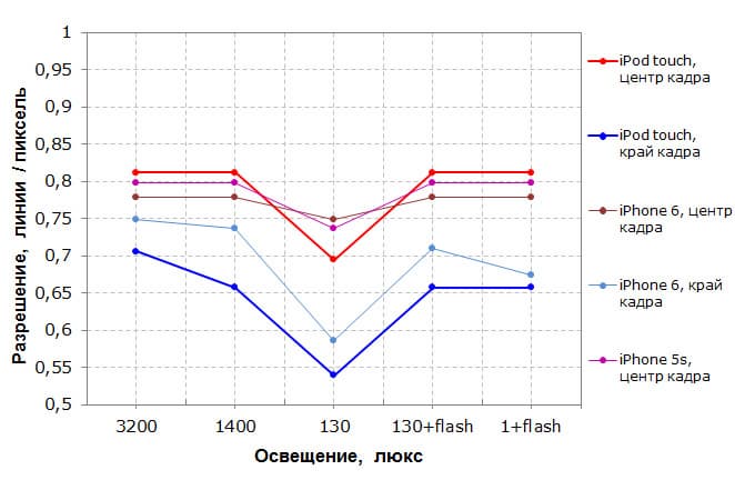 По итогам тестов можно сделать вывод, что камеры iPod touch и iPhone 6 очень похожи, но отличия все же есть — это видно по лабораторному тесту. Причина может быть в ПО, которое зависит как от версии ОС, так и от типа устройства (iPod touch, iPhone, iPad...). Тем не менее, при реальном использовании обладатели устройств вряд ли смогут заметить разницу. Даже без сравнения с iPhone камера iPod touch хороша, тем более для плеера, и вполне справится с различными сценариями.