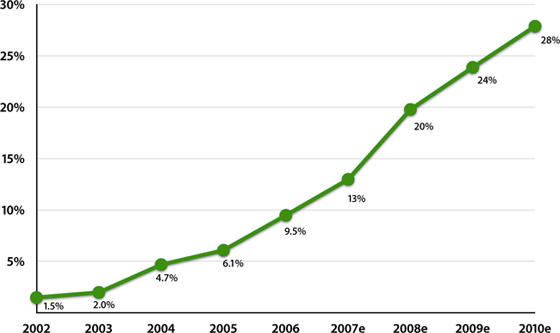 25 апреля Apple огласила свои финансовые результаты второго квартала, который закончился 31 марта. Они в очередной раз порадовали: доход компании составил 5,62 миллиарда долларов, а чистая прибыль равнялась 770 миллионам (87 центов на акцию). В прошлом году за аналогичный период Apple выручила 4,36 млрд. и получила 410 миллионов долларов чистой прибыли (47 центов на акцию). Таким образом, валовая прибыль увеличилась на 35,1 процента.