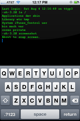 Первым известным сторонним приложением операционной системы iPhone стал эмулятор терминала, получивший название MobileTerminal. Он не использует технологии Web 2.0 и имеет собственную иконку в главном меню. Разработчикам удалось создать MobileTerminal без использования SDK (software development kit), который, впрочем, Apple выпускать не спешит, а возможно, и не планирует.