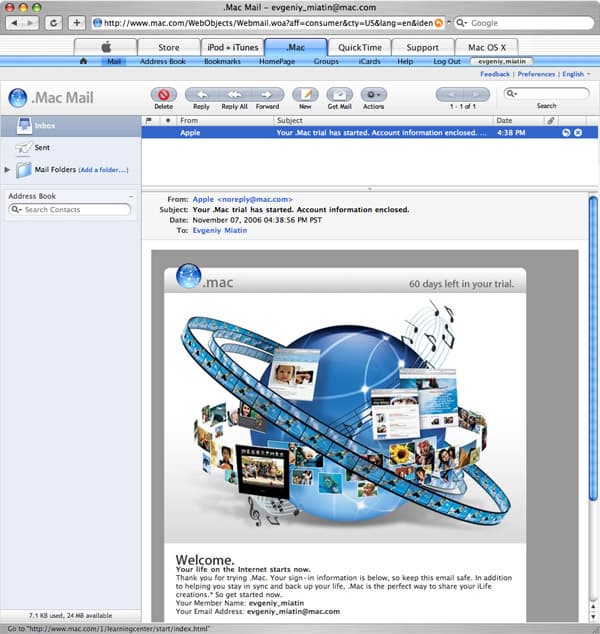 К радости многих пользователей сервиса .Mac, Apple наконец-то значительно переработала веб-интерфейс работы с почтой. Теперь он очень похож на программу Mail, поддерживает перетаскивание объектов (drag-n-drop), возможность просмотра сообщения под списком (как в программе), функция smart refreshes снижает до минимума количество обновлений страниц, что ускоряет работу с почтой, добавлена возможность быстрого ответа, интеграция с Address Book, установка отметки рядом с сообщением теперь совершается одним кликом, а также поддерживаются клавиатурные сокращения.