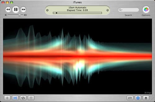 Вы наверняка знаете, что в iTunes есть встроенный визуализатор, включив который (нажмите Command+T, или второй значок в правом нижнем углу плеера), вместо скучного окна со списком композиций, вы сможете наблюдать интересную игру образов, меняющихся в такт музыке. Но возможности его настроек оставляют желать лучшего — фактически, вы можете установить только разрешение и некоторые параметры качества.
