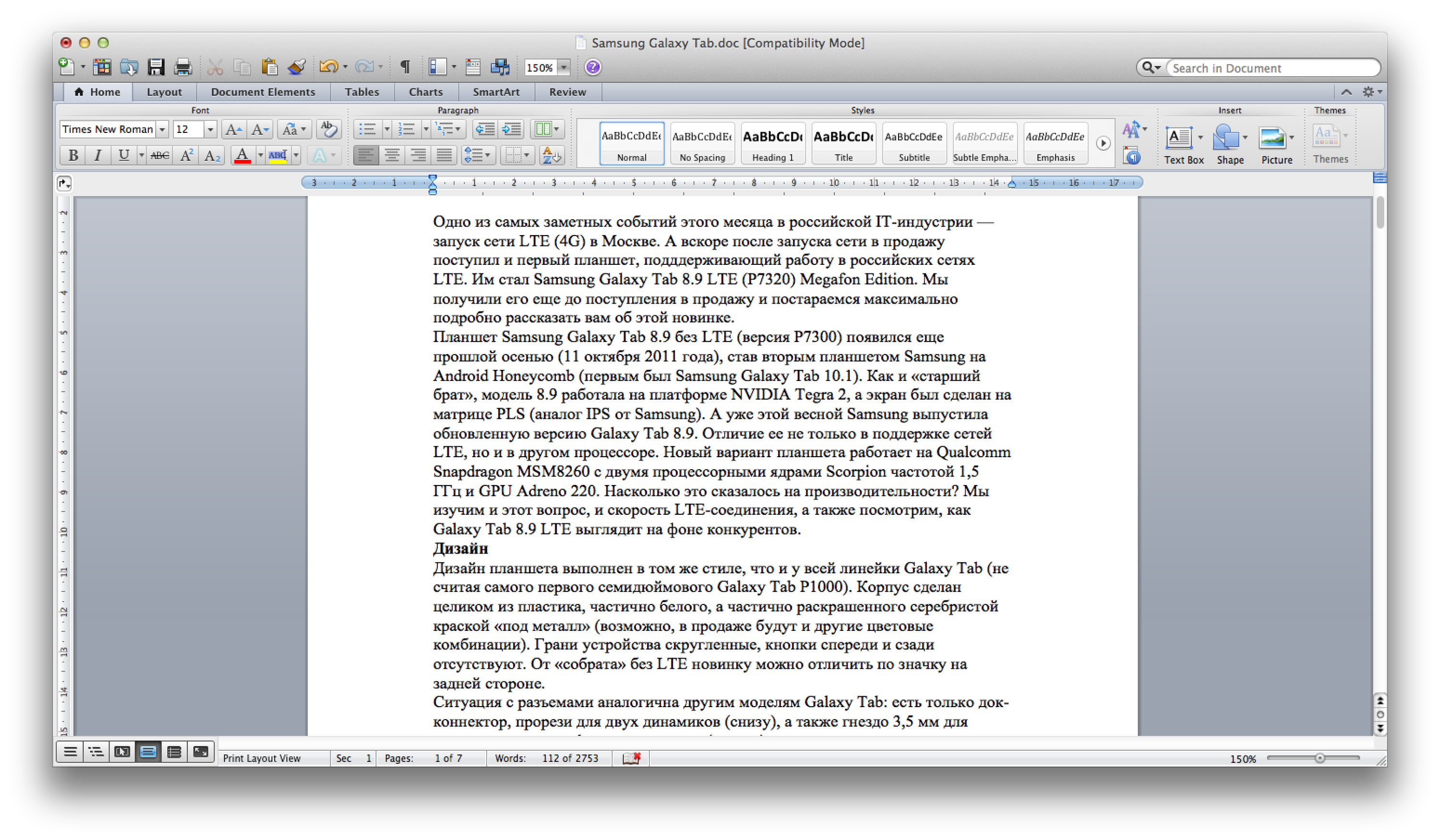 Но ладно бы только интерфейс, но и текст в Word тоже не лучше: