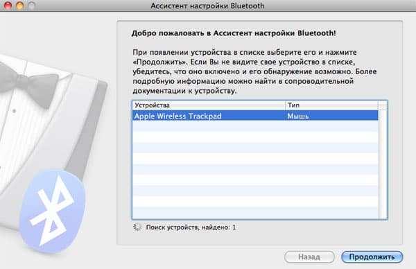 При первом подключении Trackpad к iMac система опознает его, но определяет как мышь. Ту же картину мы видим и в списке подключенных Bluetooth-устройств. Даже собственной картинки для Trackpad нет! И это должно послужить наиболее торопливым пользователям сигналом о том, что устройство пока еще не полнофункционально.
