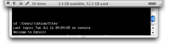 Другая панель, Terminal, занимает весь нижний выдвижной ящик и, как видно из ее названия, предоставляет пользователю возможность быстрого доступа к командной строке операционной системы. Хотя использование терминала в Mac OS X является экзотикой, использовать некоторые «продвинутые» функции можно только с его помощью, поэтому этот инструмент лишним не выглядит.