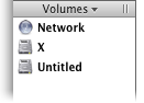 Volumes. Эта опция включает отображение на палитре смонтированных томов с жестких, сменных и сетевых дисков, а также из файлов дисковых образов. По аналогии с соответствующей панелью Finder, панель Volumes позволяет размонтировать диски.
