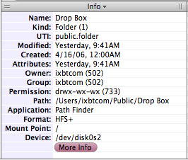 Info. Эта панель выводит информацию о выбранных файлах или папках. Стоит признать, что хотя панель Info и выводит больше информации, чем инструмент Get Info из Finder, ценность дополнительных пунктов для среднего пользователя Mac весьма сомнительна. Разработчикам, пожалуй, следовало бы предусмотреть возможность включения отображения дополнительной информации опционально, по умолчанию оставив лишь «стандартный» набор.