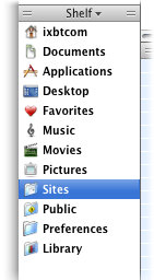 Shelf. Здесь, так же, как и в соответствующей панели Finder, пользователь может разместить наиболее часто используемые папки, например, Documents, Applications, Music, Movies и др.