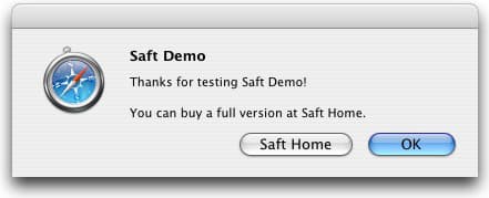 Saft является платным, стоимость одной лицензии составляет 12 долларов, а апгрейда с версии для Mac OS X 10.3 до 10.4 — 6 долларов. Все ограничения демо-версии сводятся к появлению сообщения при каждом старте браузера и в течение его работы (каждые полчаса — час).