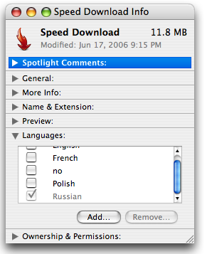 Начиная еще с третьей версии, программа стала универсальным приложением, поэтому является хорошим выбором для владельцев компьютеров Mac с обоими типами процессоров. Другой приятной особенностью утилиты является наличие в ней русской локализации. Стоит отметить, что возможности принудительного переключения языка интерфейса с помощью окна настроек в программе нет, и, чтобы включить русский язык, его нужно выбрать либо в качестве основного для всей системы, либо отключить все остальные языковые компоненты с помощью окна Get Info.