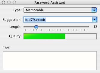 Но как придумать действительно безопасный пароль? Не стоит отчаянно бить по всем клавишам и пытаться запомнить получившуюся абракадабру. Вам поможет встроенная в систему утилита Keychain Access (расположенная в Applications -> Utilities). В окне добавления нового пароля (нажмите «+» на нижней панели), справа от поля Password размещено изображение ключа. При нажатии на него откроется дополнительное окно «Password Assistant», которое и предназначено для решения проблемы создания паролей и проверки уровня их безопасности.