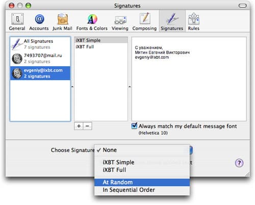 Если вы часто работаете с почтой через программу Mail, то наверняка используете функцию автоматической вставки подписей к каждому письму. Если у вас большое количество подписей, то немного разнообразить вашу переписку поможет функция автоматической ротации подписей. То есть, к каждому письму будет выбрана случайная или последовательная подпись.