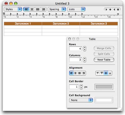 Таблицы в TextEdit