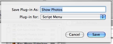 Выбрать в меню File пункт Save As Plug-in, указав в строке Plug-in for: пункт Script Menu и выбрав название для операции, например, Show Photos.