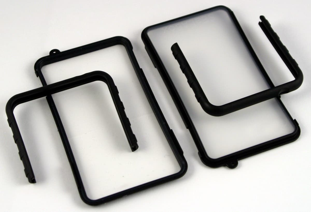 На втором элементе чуть более половины нижней части также не прозрачны. В чем причина такого решения — понять сложно. Собрать половинки между собой можно единственным образом. Это обеспечивает система пазов и выступов. По контуру между ними также есть силиконовая прокладка, впаянная в пластмассовую основу, которая и обеспечивает основное свойство чехла — водонепроницаемость. Отметим, что при любой сборке-разборке желательно проверять состояние этого элемента и удалять грязь, пыль и т. п., мешающие плотному контакту.