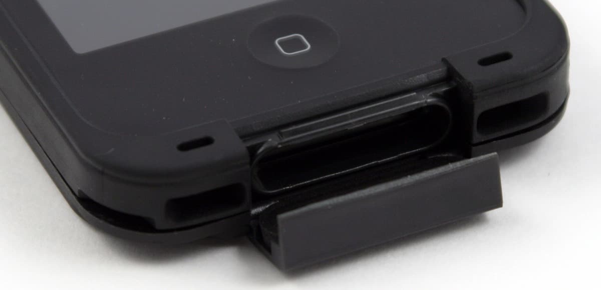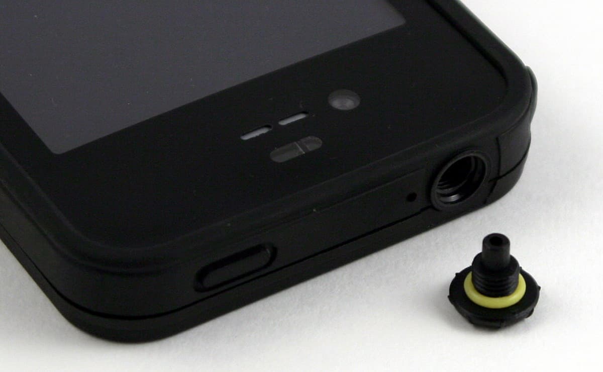 Для подключения наушников или гарнитуры нужно использовать комплектный кабель-адаптер (длина — 15 см). Его штекер имеет необходимую резьбу и кольцо-прокладку, а вот гнездо уже обычное. Отметим, что в комплекте с чехлом идет четырехжильный кабель, который обеспечивает совместимость с оригинальной гарнитурой и поддерживает не только наушники, но и микрофон. Дополнительно можно приобрести специальную версию адаптера — «Swimming», которая, по заявлению компании, «более водонепроницаема», однако не поддерживает микрофон и управление. В любом случае можно использовать чехол и без гарнитуры, не забывая установить заглушку в разъем.