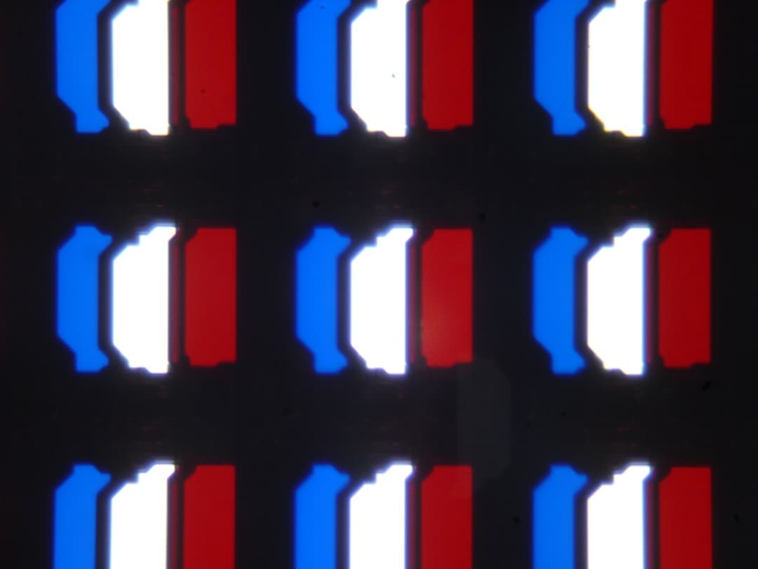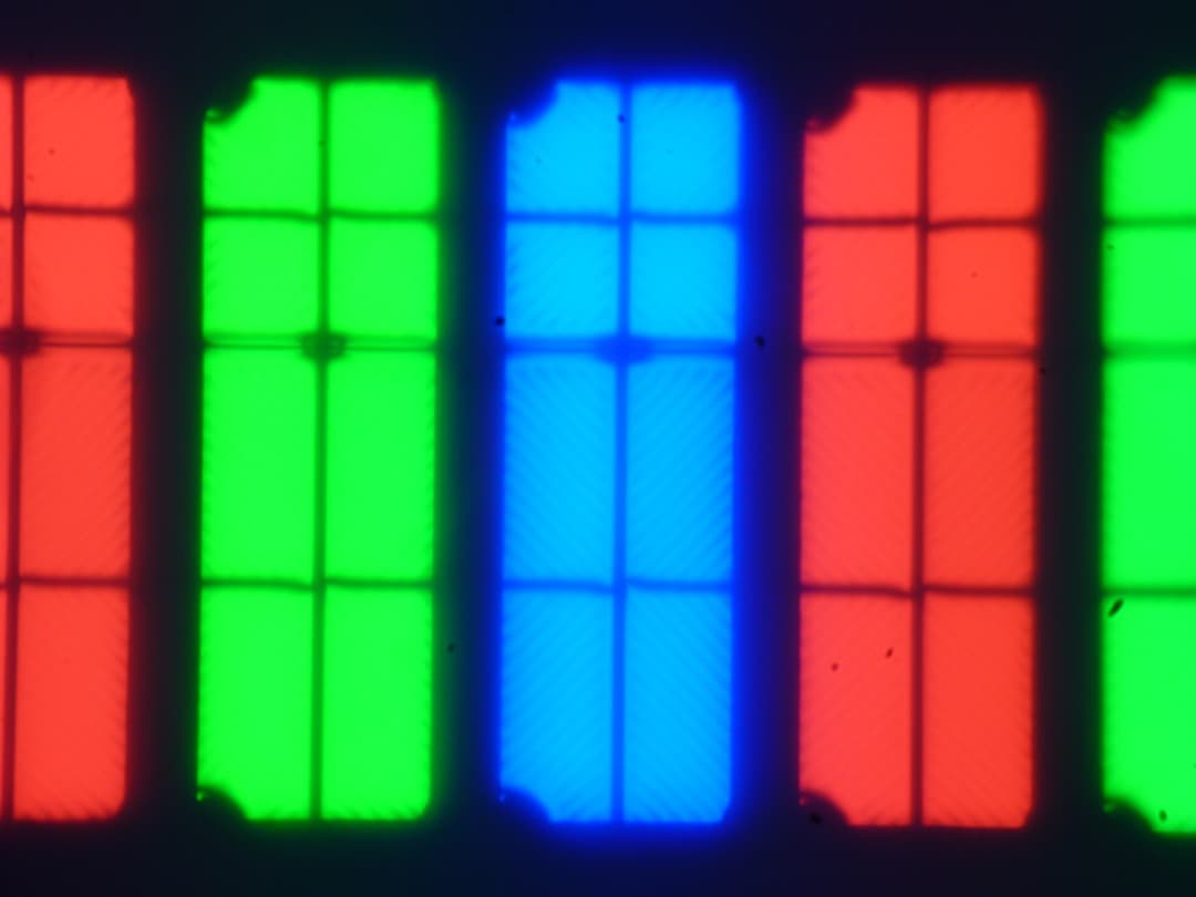 Если рассматривать изображение с достаточно близкого расстояния, то на качество картинки будут оказывать особенности строения матрицы. Рассмотрим микрофотографии (масштаб различается):