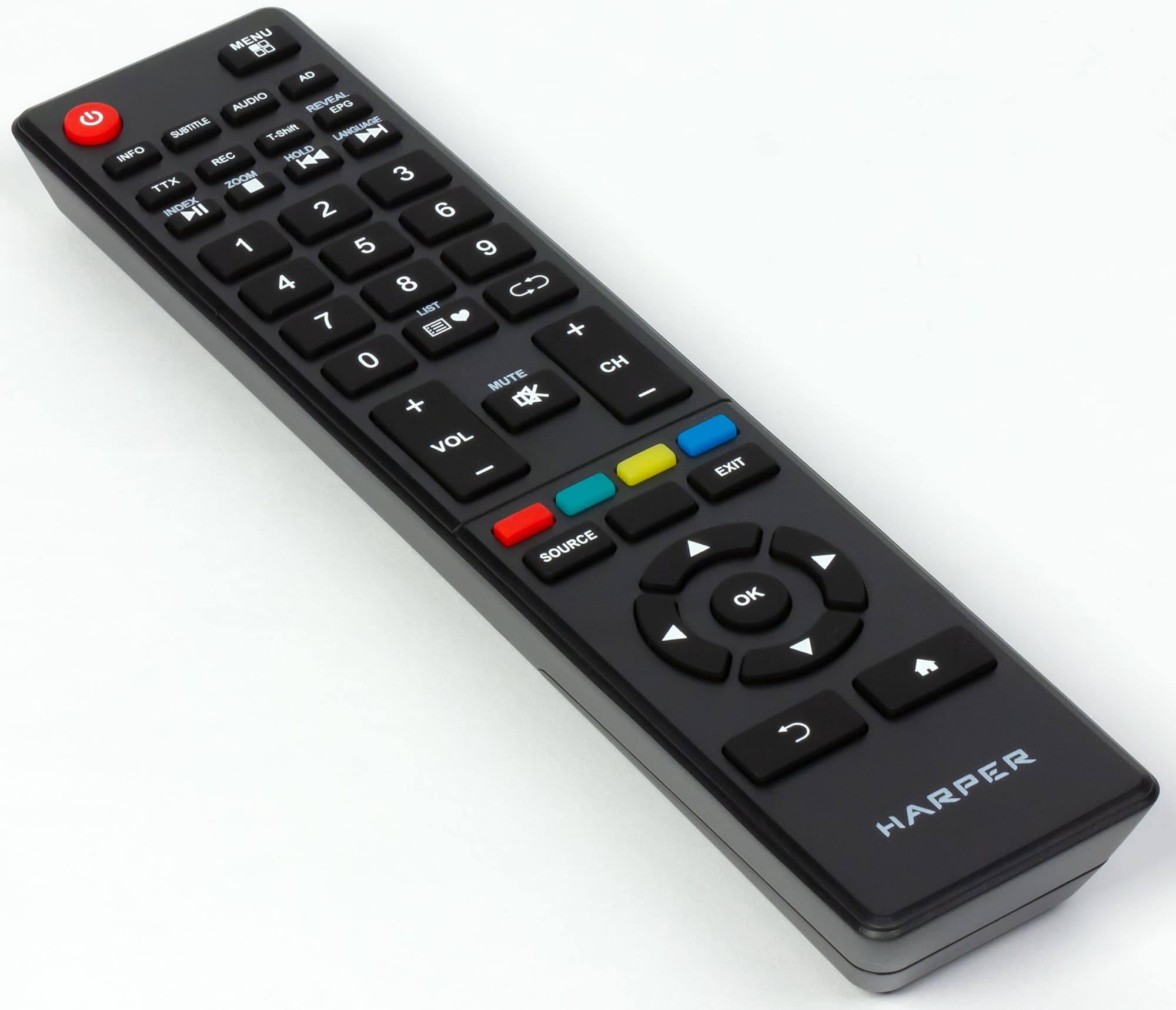 Пульт ТВ Harper работает только по ИК и неудобен в использовании в частности из-за слишком большого количества кнопок, некоторые из которых расположены слишком тесно.