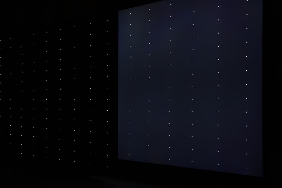 У LG черный остается абсолютно черным, под каким углом ни смотри. Рост яркости черного у Samsung определить очень сложно из-за зонального динамического снижения яркости подсветки (но черный в любом случае очень темный). В качестве демонстрации приведем фотографию черного поля с яркими точками в случае ТВ LG и Samsung (слева — LG, справа — Samsung).