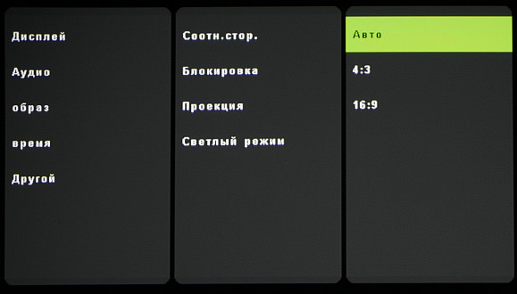 Меню с настройками можно быстро вызывать кнопкой пульта. Навигация по меню достаточно удобная. Возможности по настройке изображения ограничены выбором из трех предустановленных профилей и пользовательского, в котором доступные несколько настроек, влияющих на яркостный и цветовой баланс.