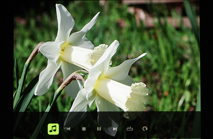 Режим просмотра только один — изображение увеличено до ближайших границ проекции. Картинки можно просматривать в режиме слайд-шоу и даже под музыку (аудиофайлы должны находиться в той же папке, что и изображения).