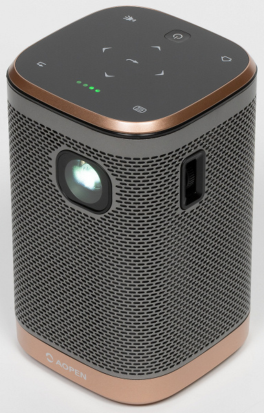 Встроенные громкоговорители для аппарата такого размера весьма громкие, есть немного низких частот, паразитных резонансов в явном виде не слышно, стереофонический эффект присутствует. В целом качество для встроенных миниатюрных источников звука хорошее. Со специализированными мобильными колонками соревноваться этот проектор не может, но и они проецировать не умеют. Отметим, что громкоговорители размещены спереди и сзади, поэтому хотя бы в режиме Bluetooth-колонки проектор лучше размещать боком к слушателю — так стереофонический эффект себя проявит.