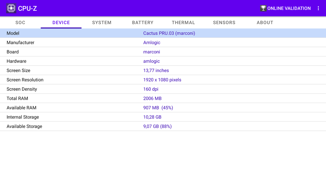 Программной платформой для этого ТВ служит операционная система Android TV, основанная на Android версии 9. Конфигурацию аппаратной части поясняют данные программы CPU-Z:
